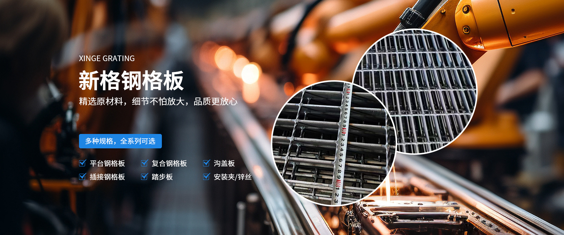河南新格重工有限公司成立于2007年,占地36000余平方米,是河南省專注于鋼格板設(shè)計、制造、銷售的加工制造企業(yè)。公司一貫秉承“打造全國鋼格板基地”的企業(yè)理念,在“創(chuàng)新、務(wù)實、奉獻”的企業(yè)精神指引下,逐漸成長為一家具有現(xiàn)代化管理理念、優(yōu)良的企業(yè)文化及靈活的經(jīng)營機制的創(chuàng)新型加工制造企業(yè)?! 」静捎媚壳笆澜缟锨靶l(wèi)的制造技術(shù),由計算機控制的鋼格板壓阻焊機制造,機械手自動將橫桿橫放在均勻排列的扁鋼上,通過強大的電焊功率和液壓力將橫桿壓焊入扁鋼內(nèi),從而得到焊點固定、穩(wěn)定性高、強度大的高質(zhì)量鋼格板。公司擁有成熟的CAD設(shè)計、制造技術(shù)以及優(yōu)良的工程設(shè)施經(jīng)驗,獨立自主的進出口貿(mào)易資質(zhì),通過ISO9001資質(zhì)體系認證。所生產(chǎn)的鋼格板系列產(chǎn)品從外觀質(zhì)量、尺寸公差、焊接質(zhì)量等方面均滿足客戶的需求。公司可按中國鋼格板YB/T4001.1-2007標準生產(chǎn),也可按符合美國ANSI/NAAMM(MBG531-88)、英國BS4592-1987、澳大利亞AS1657-1985等標準進行生產(chǎn)。產(chǎn)品暢銷全國三十多個省、市、自治區(qū),并有部分產(chǎn)品出口到國外,給上百家大型企業(yè)提供了堅實可靠的服務(wù),得到了廣大用戶的一致肯定?! 」臼冀K堅持“視品質(zhì)為生命,視顧客為上帝”的經(jīng)營宗旨,依托成熟的技術(shù)力量及良好的企業(yè)信譽,竭誠為廣大用戶提供高質(zhì)量的產(chǎn)品及全方面的售前、售中、售后服務(wù)。  我們?nèi)w新格人將帶著真誠的期望,一如既往地以具有競爭力的價格、高質(zhì)量的產(chǎn)品為工程項目提供盡善盡美的服務(wù),并希望與用戶單位建立長久有好的合作伙伴關(guān)系!